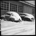 Voitures et camions du STR sous la neige.
